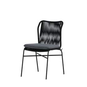 Table à manger Julian 210*100 - acacia + fauteuil Lindos - alu noir / corde noire