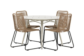 Lina spisebord 120ø - beige + Lindos spisestol - svart alu / svart rep